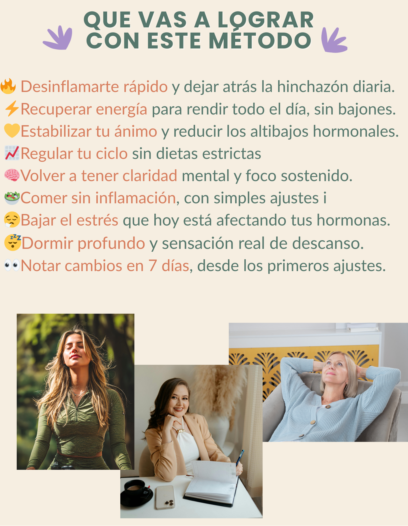 ⭐⭐⭐⭐⭐"A los pocos días noté menos retención y dormí mejor. Me encantó que no exige dietas estrictas ni cosas imposibles. Es realmente un método consciente."