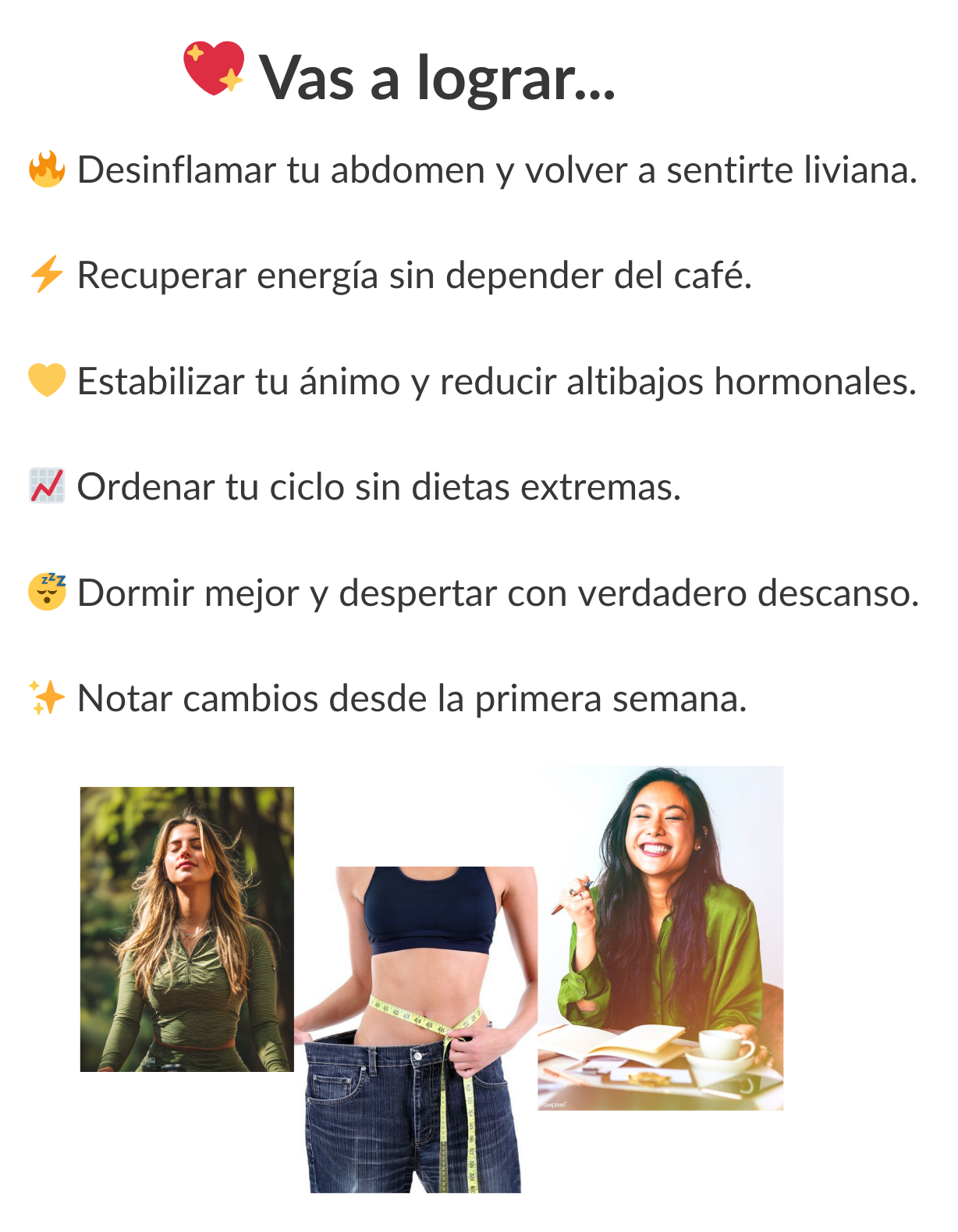 Por eso, si seguís los pasos y no empezás a notar cambios en tus niveles de energía, hinchazón o claridad emocional en 21 días, me escribís y te guío de forma personalizada para ajustar lo necesario.